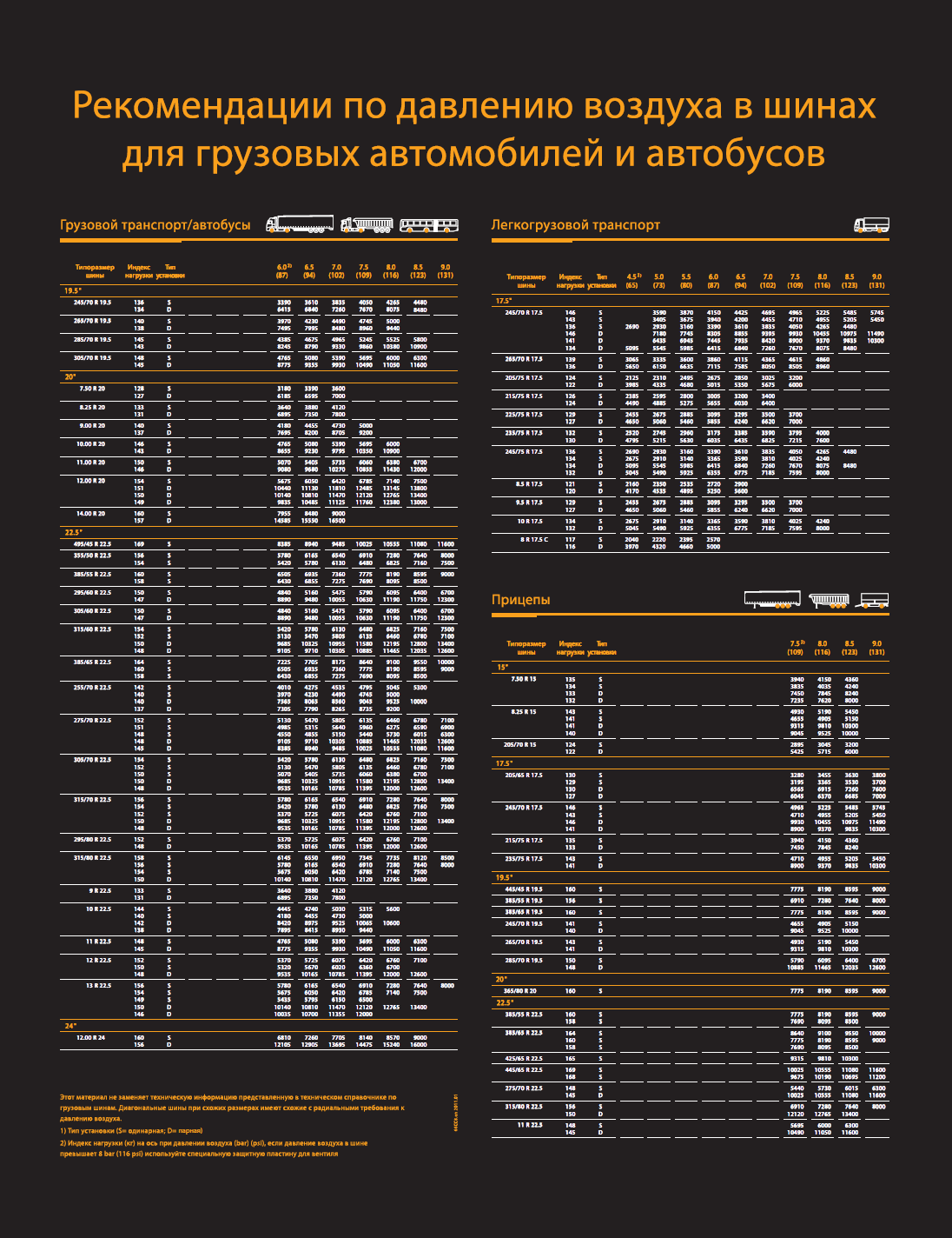 Мы различаем три вида давления для грузовой шины: